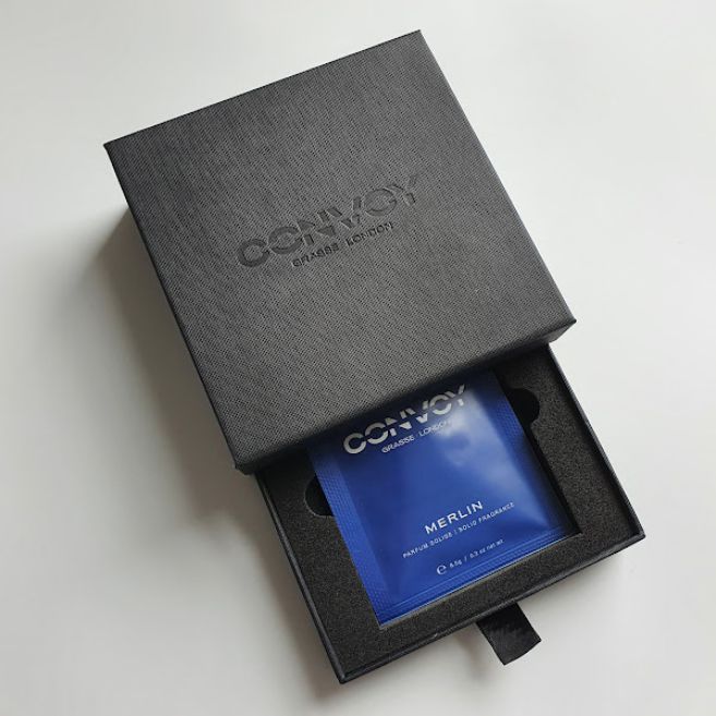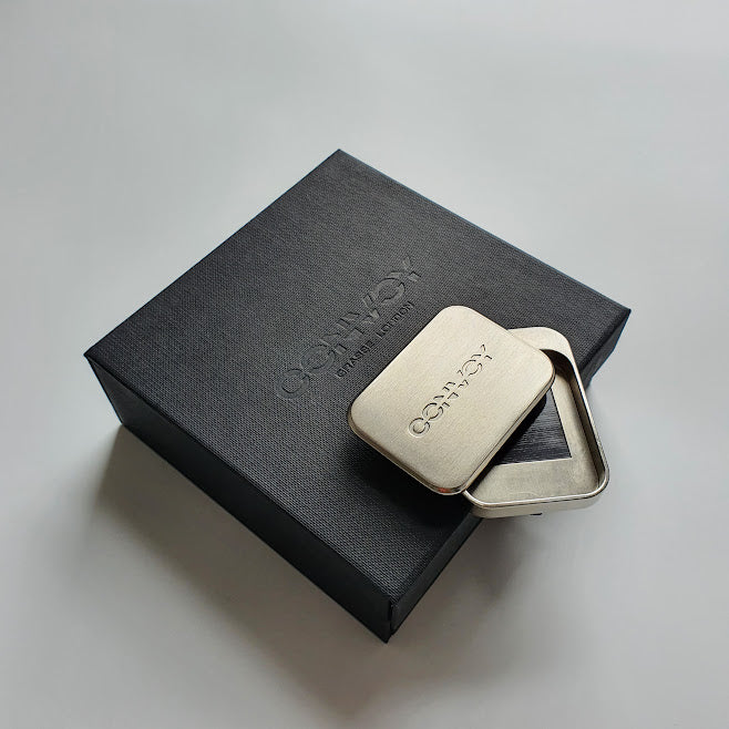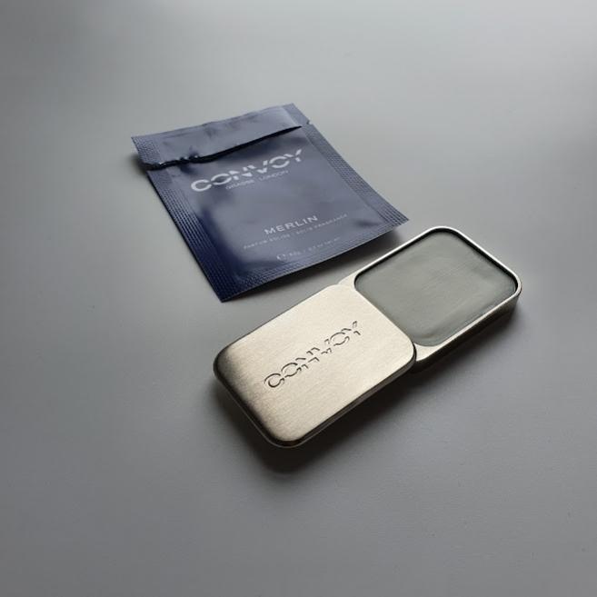 Firstly, remove the outer sleeve and lift open the lid of the upper compartment of the outer box. Take out the metal Convoy case. This is the case that will hold your fragrance.